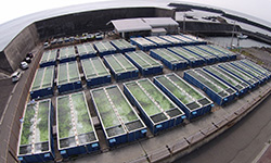 陸上養殖することで、一年を通して収穫できることと、夾雑物(きょうざつぶつ)が混入しにくいメリットがあります。